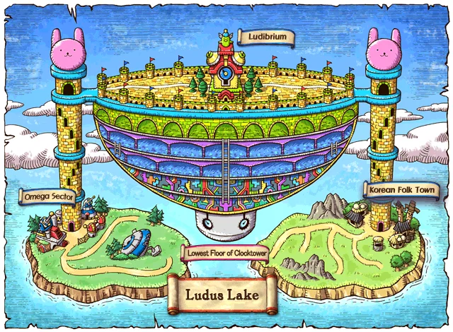 메이플랜드 루디브리엄 지역 맵 62개. 몬스터 레벨 범위: Lv.30~99.